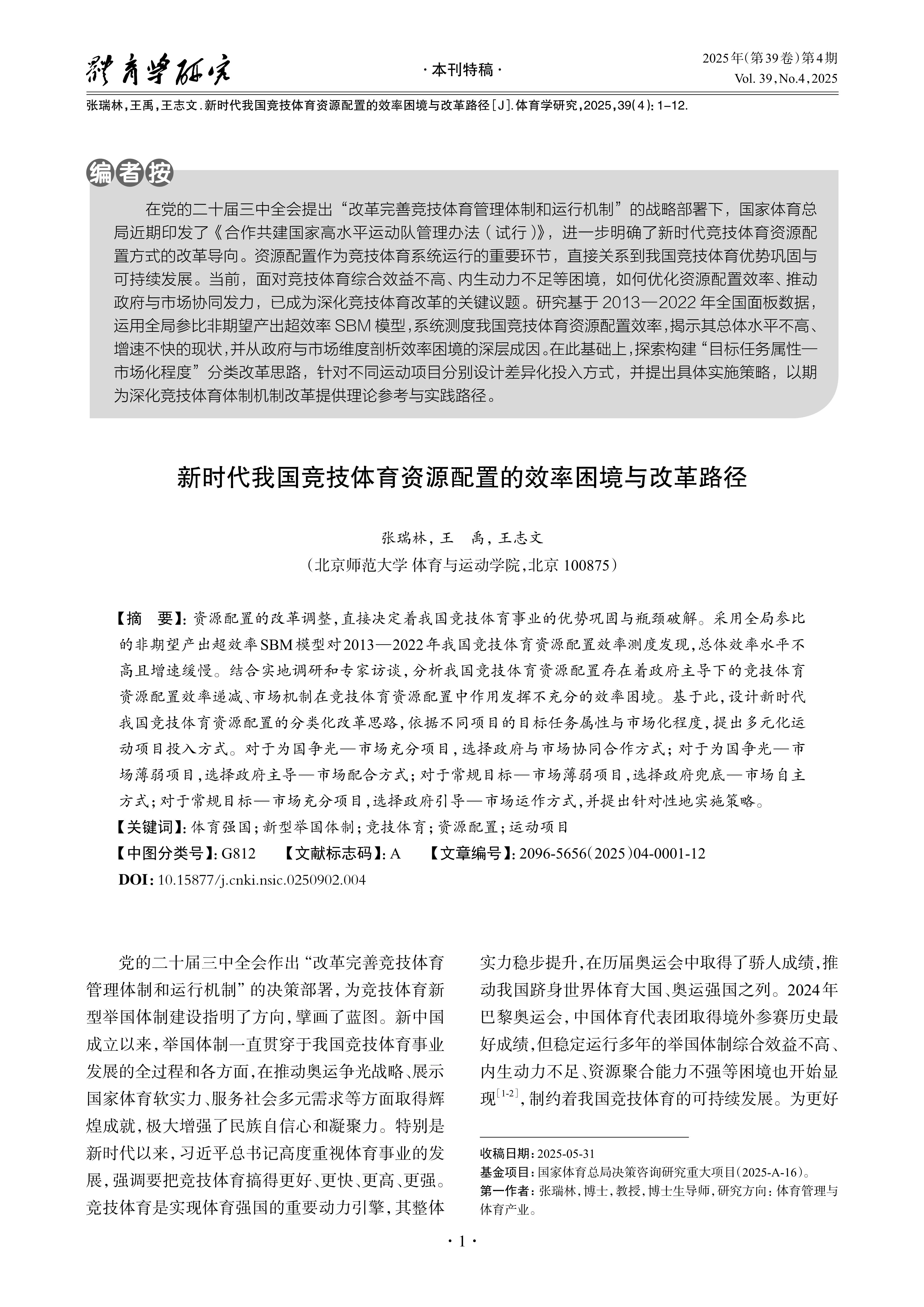 新时代我国竞技体育资源配置的效率困境与改革路径